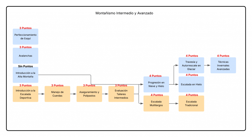 • Contar con 3 a 4 puntos de ayudantía según cada taller (salvo alta montaña que no requiere). Como obtener y validar los puntos de ayudantía, revisar AQUÍ.
