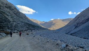 A mediodía alcanzamos un hermoso bofedal lleno de aves entre ellas una pareja de piuquenes, unos patos juarjuales y bandadas de otras más pequeñas como churretes.